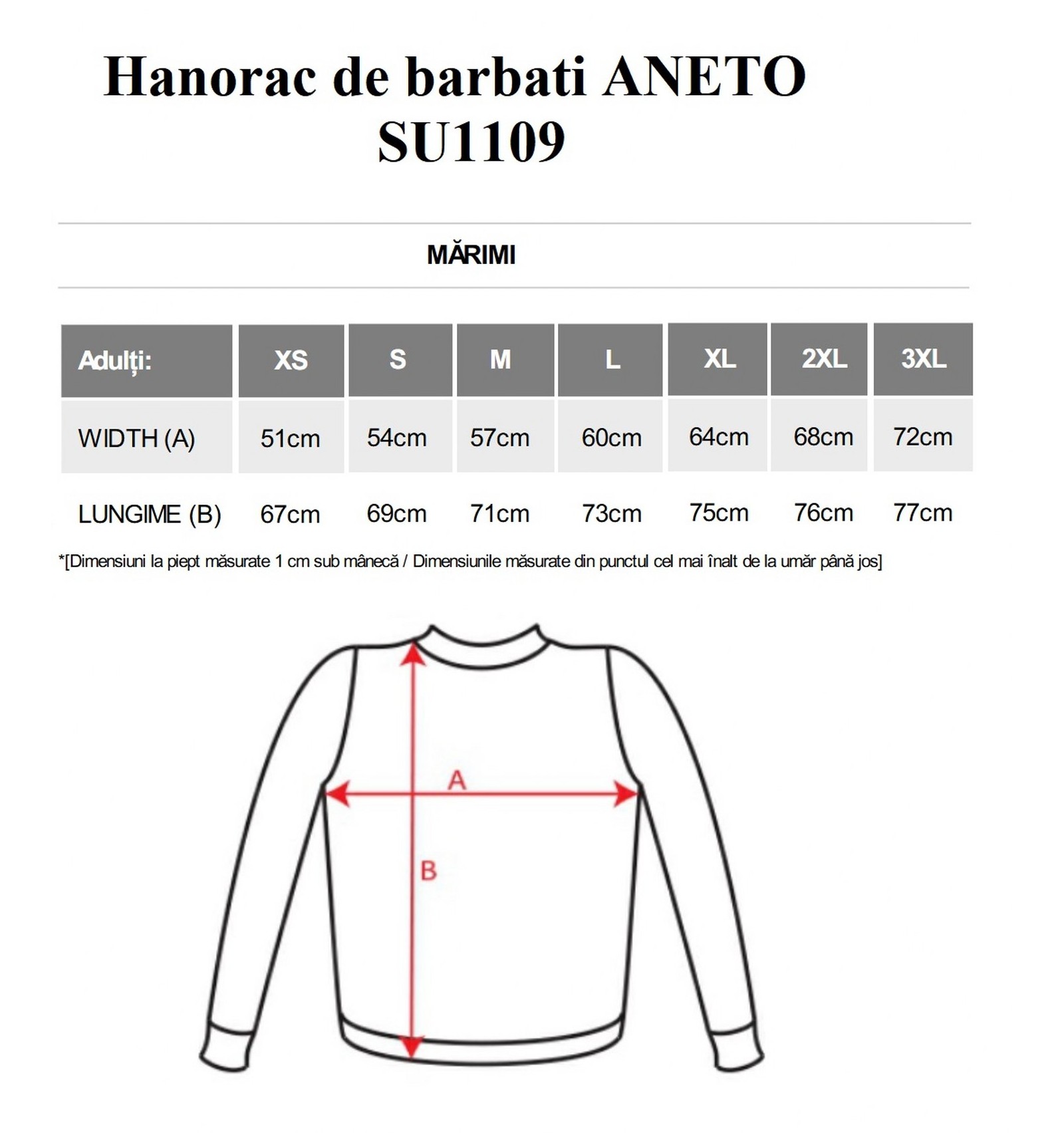 Adulți: S, M, L, XL, XXL, XXXL