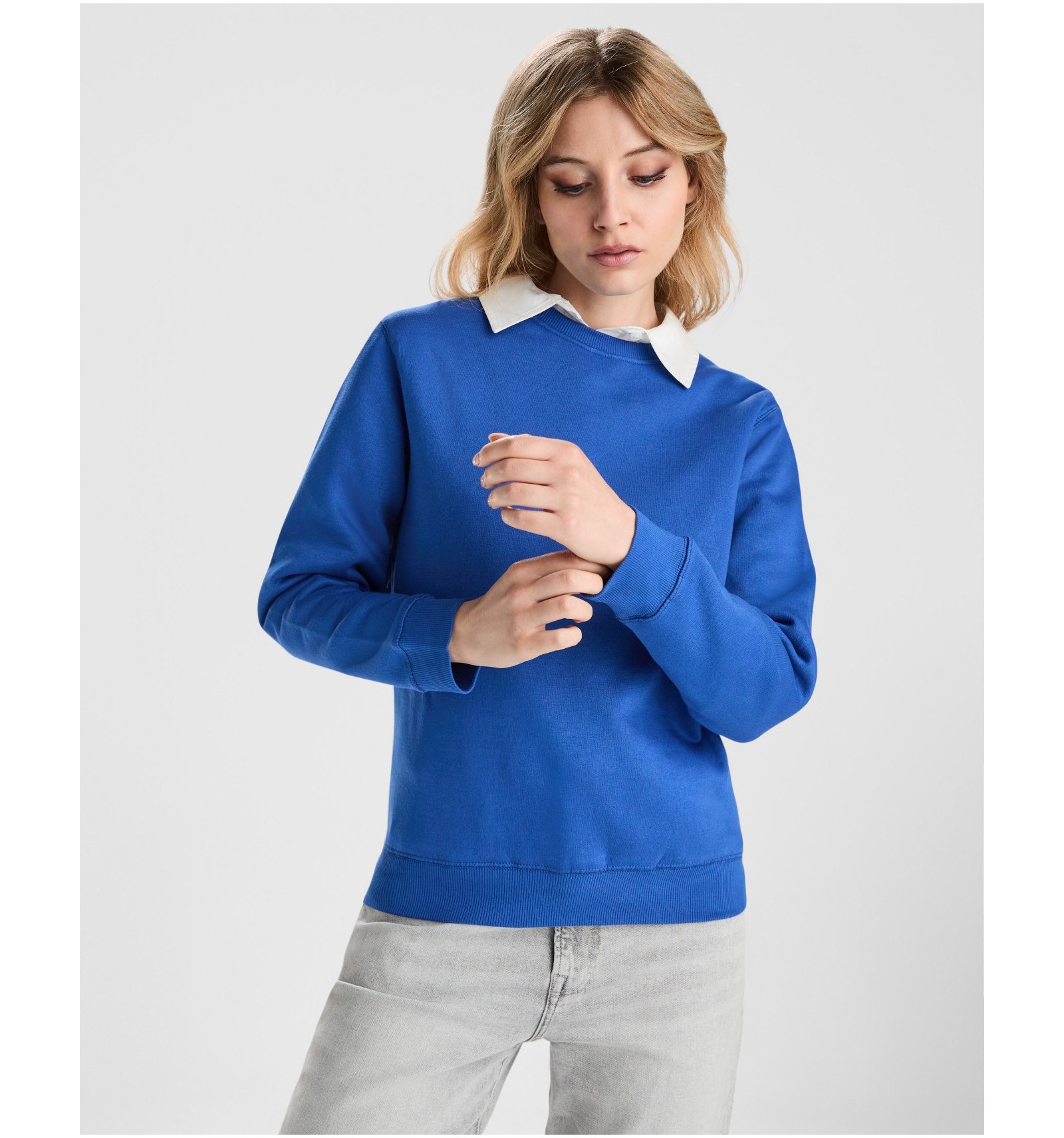 60% bumbac organic pieptănat / 40% poliester reciclat, vătuit la interior, 300 g/m². Culoarea gri melanj: 53% bumbac organic pieptănat / 40% poliester reciclat / 7% vâscoză