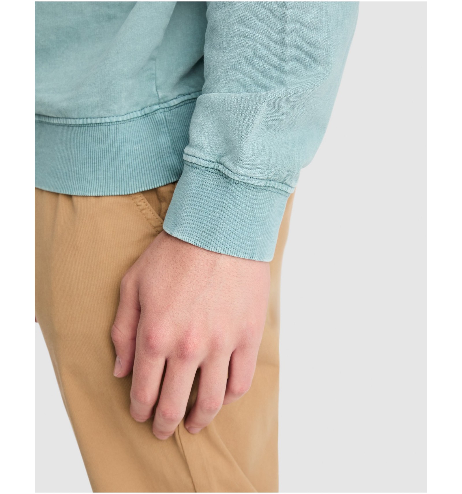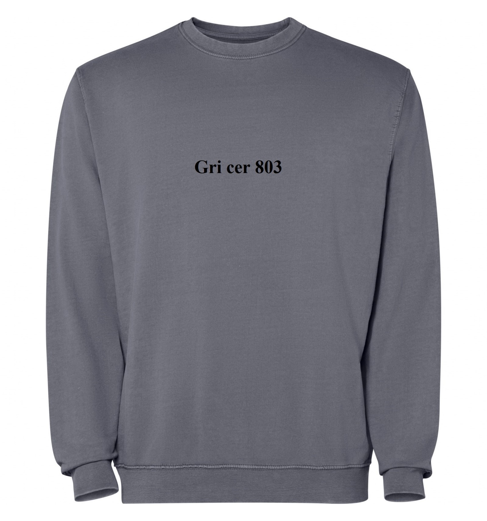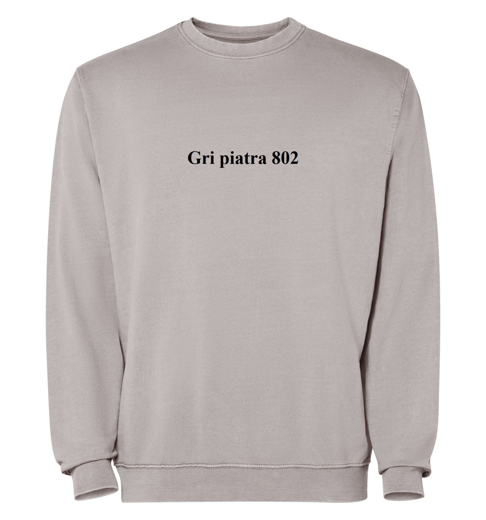 Hanorac unisex cu guler rotund din bumbac spălat nevătuit. Guler, manșete și talie din material reiat 2x1 cu elastan.