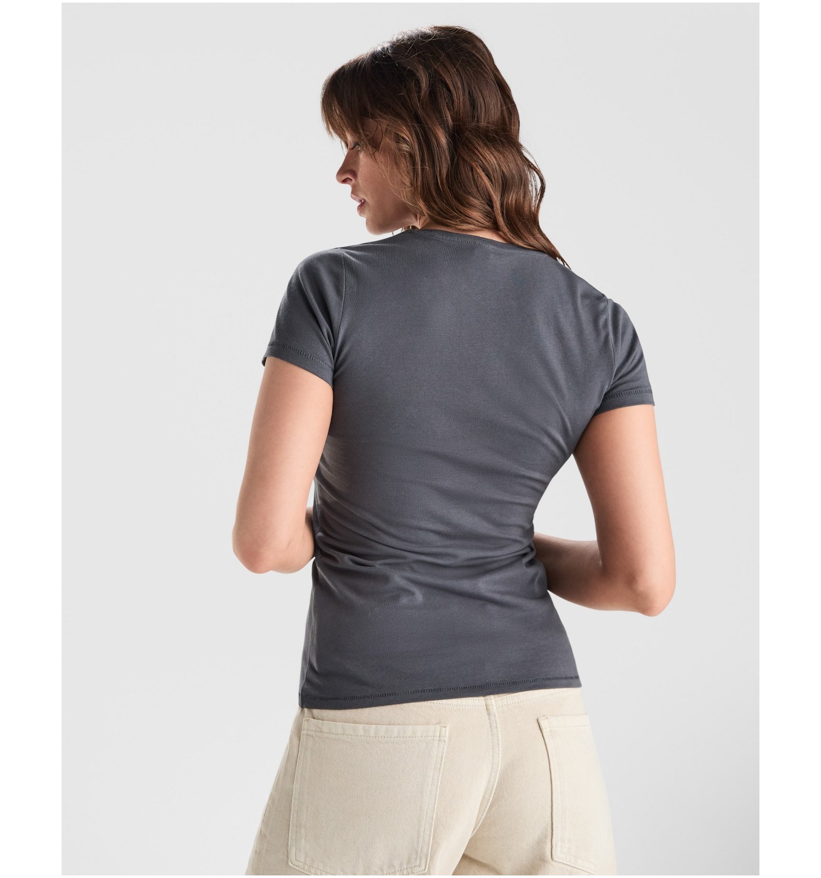 Tricou cambrat cu mânecă scurtă din bumbac pieptănat organic cu certificare GOTS. Guler rotund cu nervuri 1x1.