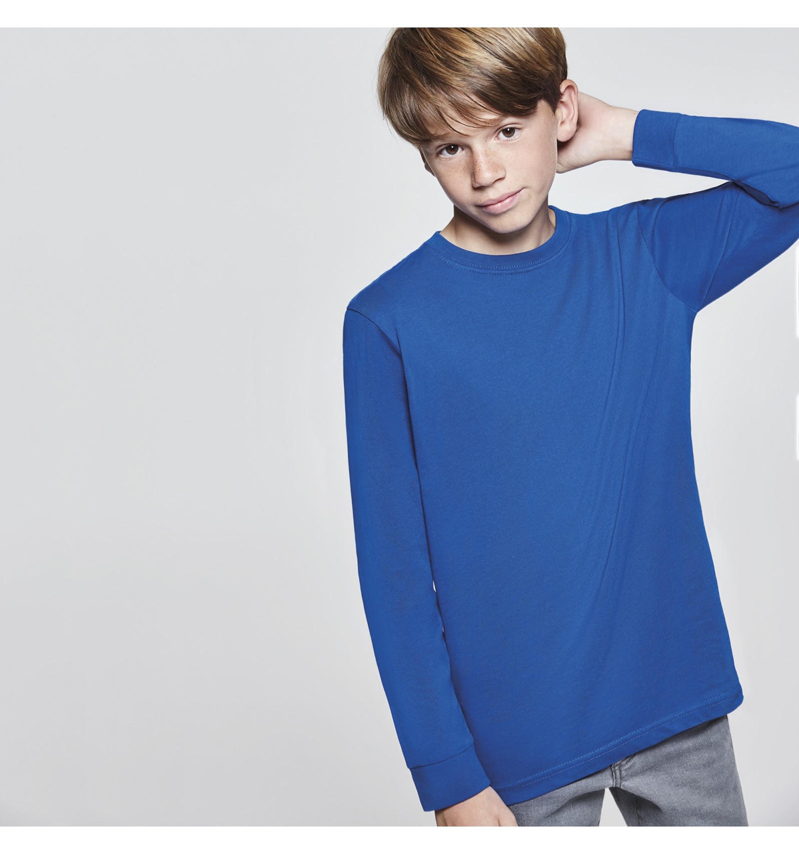 Tricou cu mânecă lungă, cu guler de 4 straturi la baza gâtului și manșete canelate 1x1. Bandă întărită pentru acoperirea cusăturii la guler și umeri și cusături laterale.