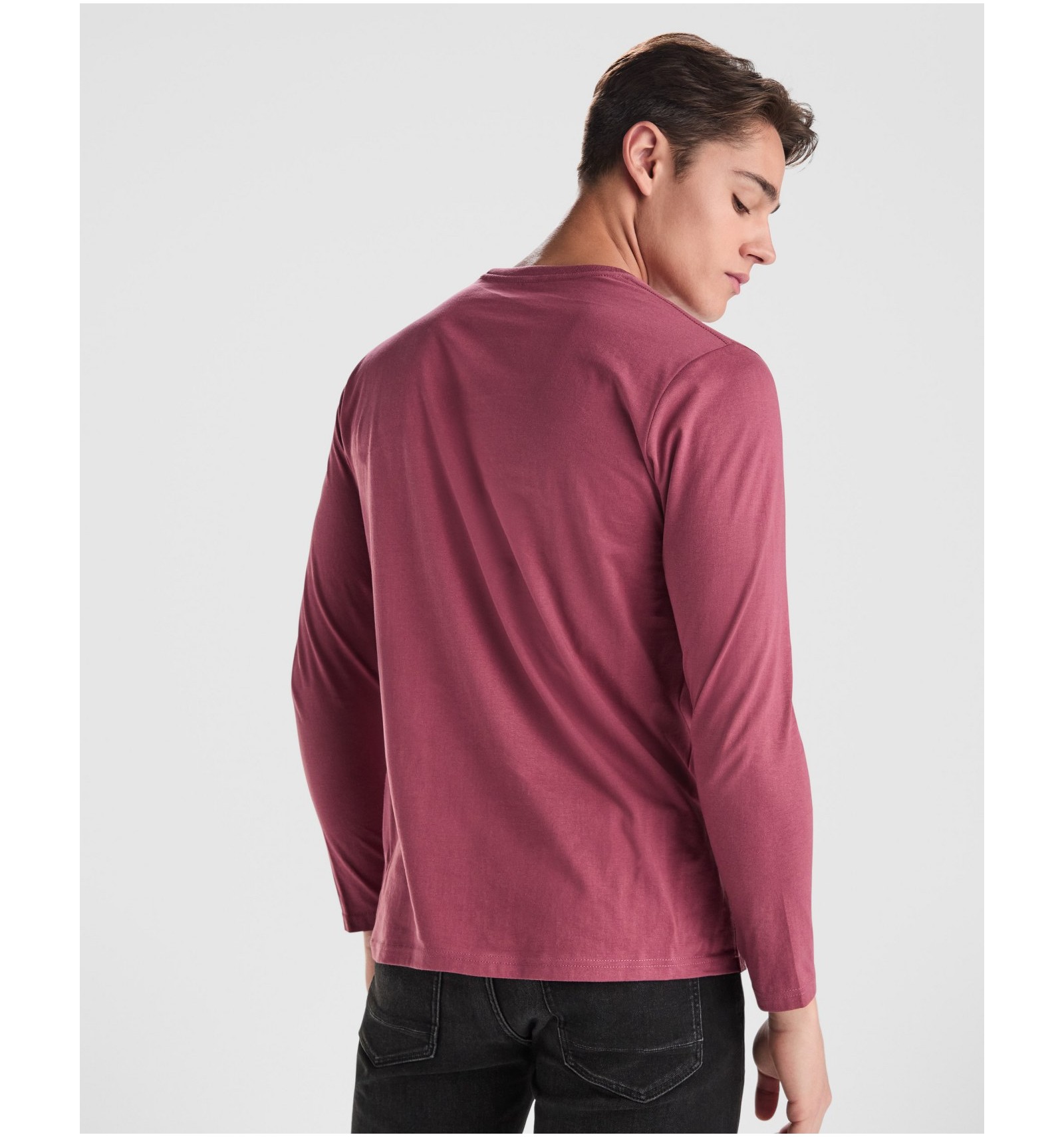 Tricou cu mânecă lungă și guler rotund de 4 straturi. Fără cusături laterale. Bandă întărită pentru acoperirea cusăturii la guler și umeri. Fără manșete.