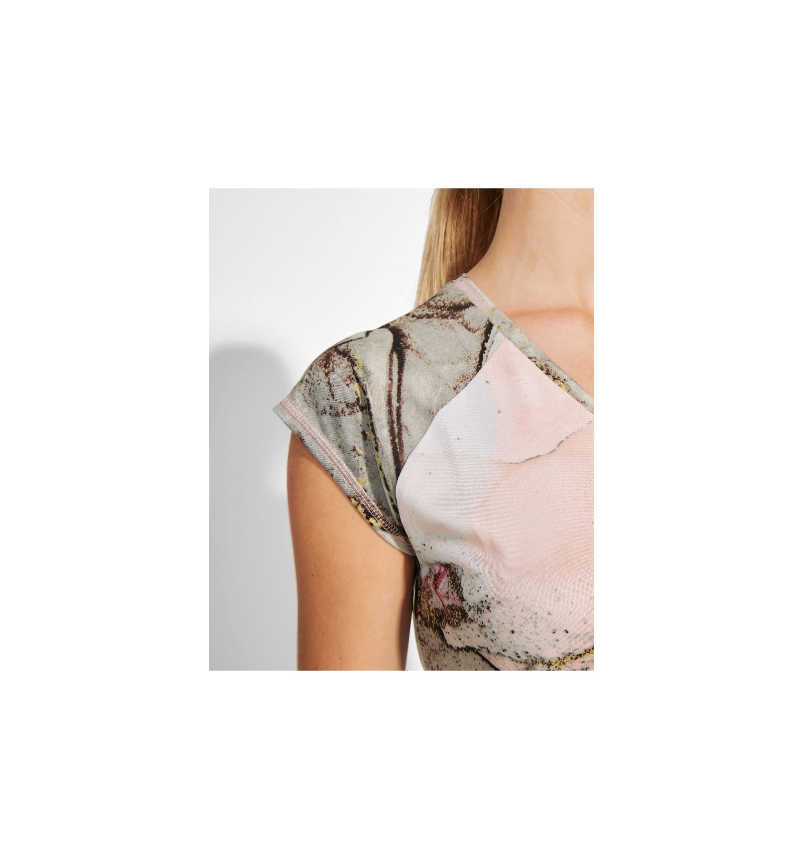 Tricou tehnic multisport și mâneci raglan. Decolteu în V. Țesătură din poliester cu atingere de bumbac. Croială cambrată. Tiv rotund. Cusături overlock asortate pe tiv și mâneci.